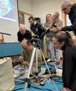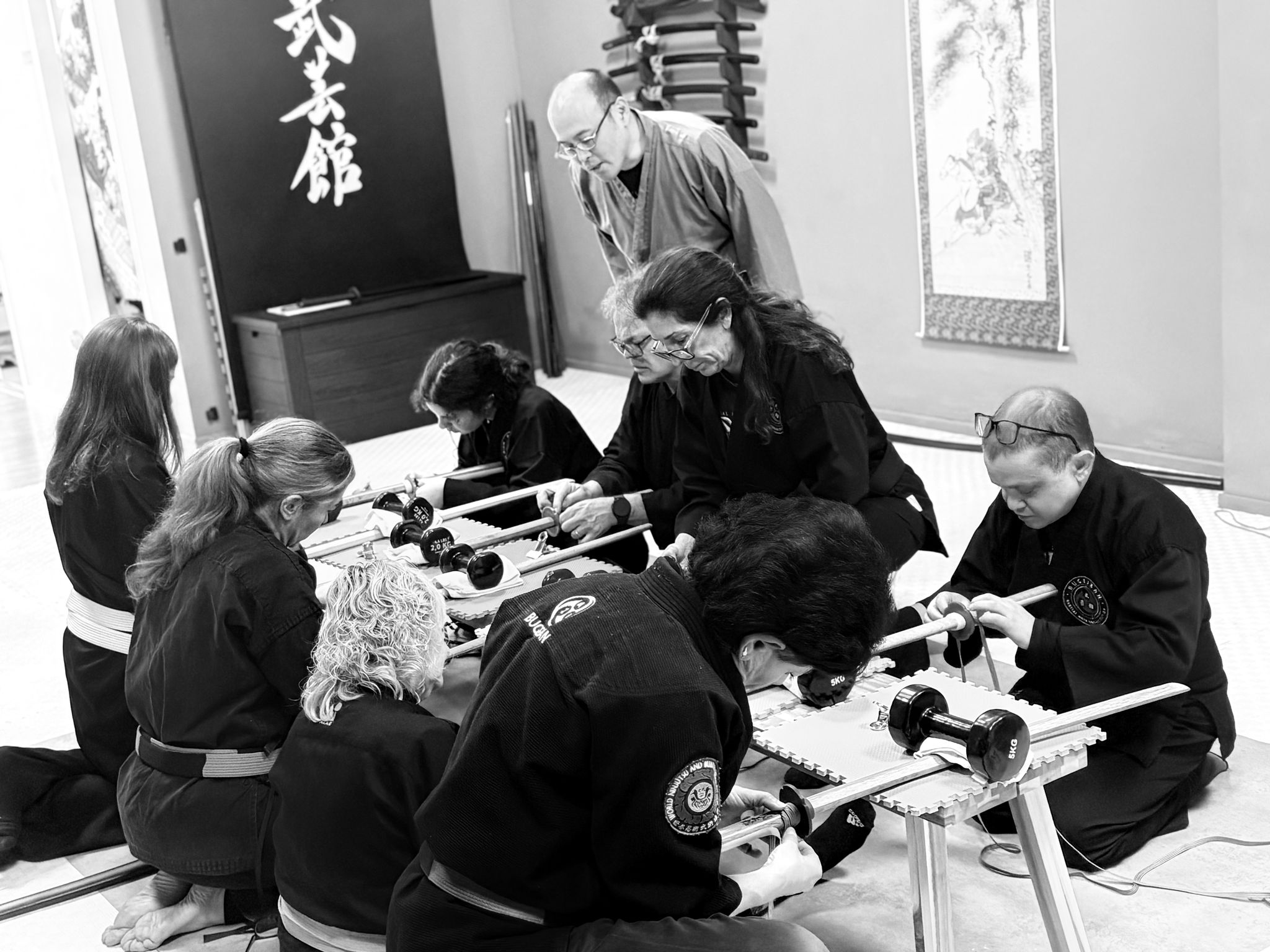 Yagura Sensei aims to teach traditional techniques such as tsukamaki (handle wrapping), kumihimo (braiding), and the production methods of sword rubbings to people overseas.